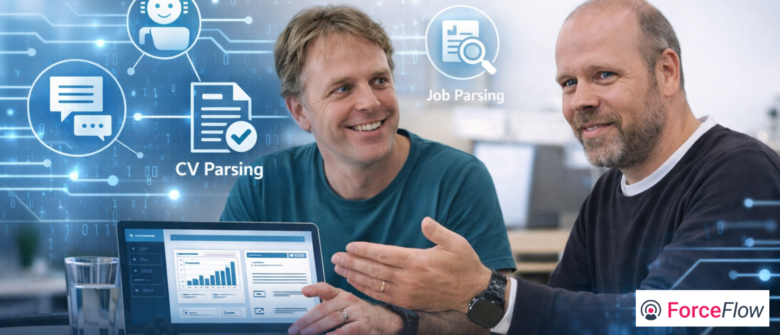 De eerste anderhalf jaar werkte het team met complexere recruitmentsoftware. Maar al snel bleek dat niet te passen bij de dynamiek waarin snelheid, overzicht en eenvoud cruciaal zijn. ForceFlow bood precies wat nodig was: een platform dat speciaal is gebouwd om veel klanten tegelijk te bedienen, zonder te verzanden in administratie.